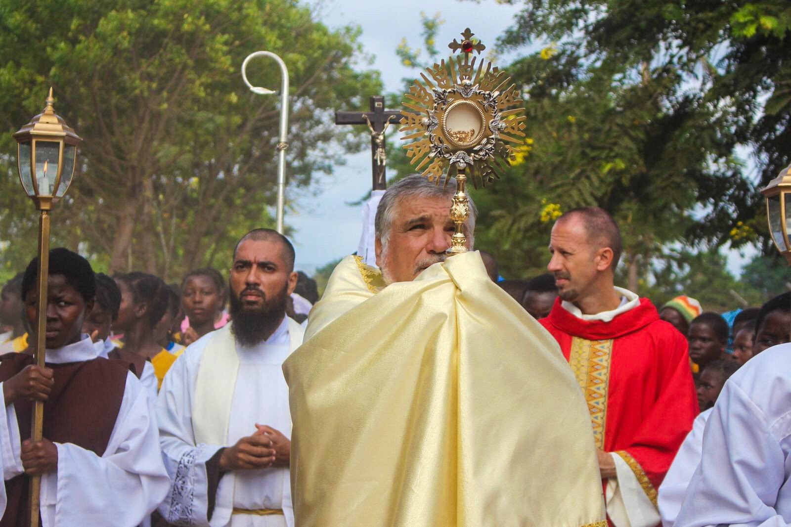 A Missa de abertura, presidida pelo Bispo de Tete, Dom Diamantino Guapo Antunes, foi precedida pela procissão do Corpo do Senhor. Foram centenas os católicos de Inhangoma e de suas comunidades que participaram na procissão e na celebração da Missa, durante a qual o Bispo de Tete administrou o sacramento do Crisma a 170 fiéis, a maior parte dos quais jovens.