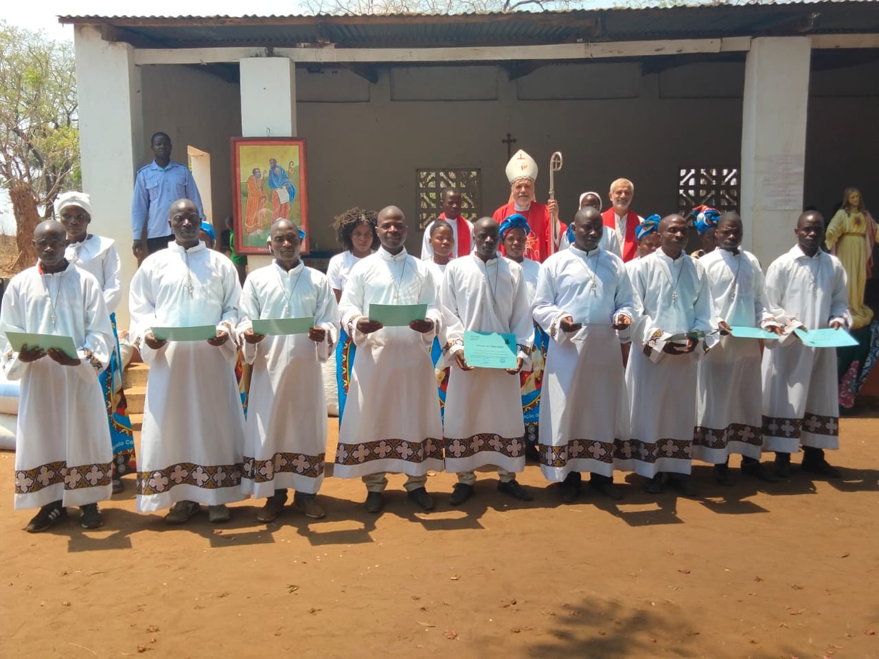 No dia 18 de Outubro, na Missa presidida por Dom Diamantino Antunes, 9 famílias de catequistas oriundas das paróquias de Miruro, Uncanha, Fingoè, Nkantha, Furancungo, Mpenha e Tsangano receberam o envio apostólico pelas mãos do Bispo de Tete. A formação dos catequistas começa em Janeiro e termina em Outubro O catequista escolhido pela sua paróquia, vem para o Centro Catequético com a sua esposa e filhos e todos estão em formação.